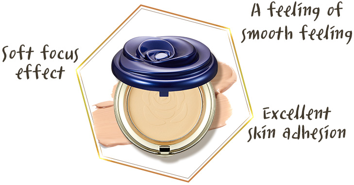 | Soft focus effect Apply soft cover powder to give smooth and natural skin expression, smoothly gently shave skin irregularities, and bright face makeup can be produced.. | A feeling of smooth feeling Contains soft satin texture powder that can be felt at your fingertips, softly expresses the texture of the skin, absorbs sebum, and smooth skin can be produced. | Excellent skin adhesion It contains Macadamia Seed Oil and Meadow Foam Seed Oil to help skin condition. It has excellent absorbency and adhesion to skin, less drying after powdering, and provides facial makeup and care without irritation. |